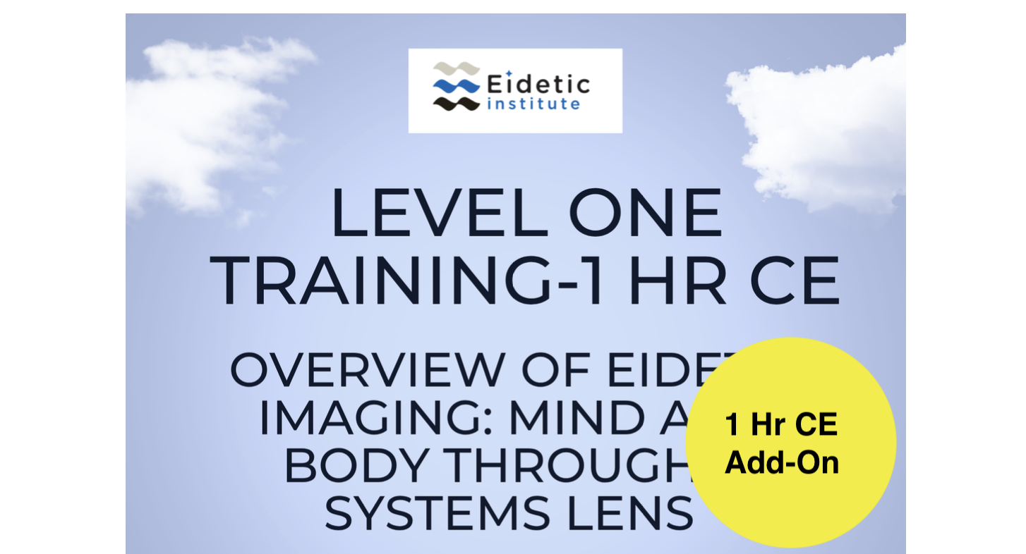Every day we experience a steady stream of sights, sounds, smells, tastes, and touches. The mind receives and processes these events and stores them as vivid images, also known as eidetics, which contain all the information of the original experience. The image reveals elements stored near the surface as memories that we easily retrieve and elements of the memory that were not experienced at the time but remain hidden or forgotten. These hidden images contain the potential for health and growth. Seeing the whole picture, the eidetic of the image brings the potential forward.
